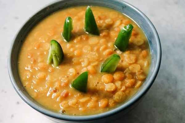 Yellow split chickpeas cooked in mild sauce with turmeric, onions, garlic and ginger.