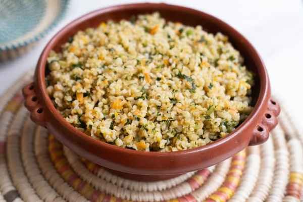 Rice, cooked with carrot and tomato.